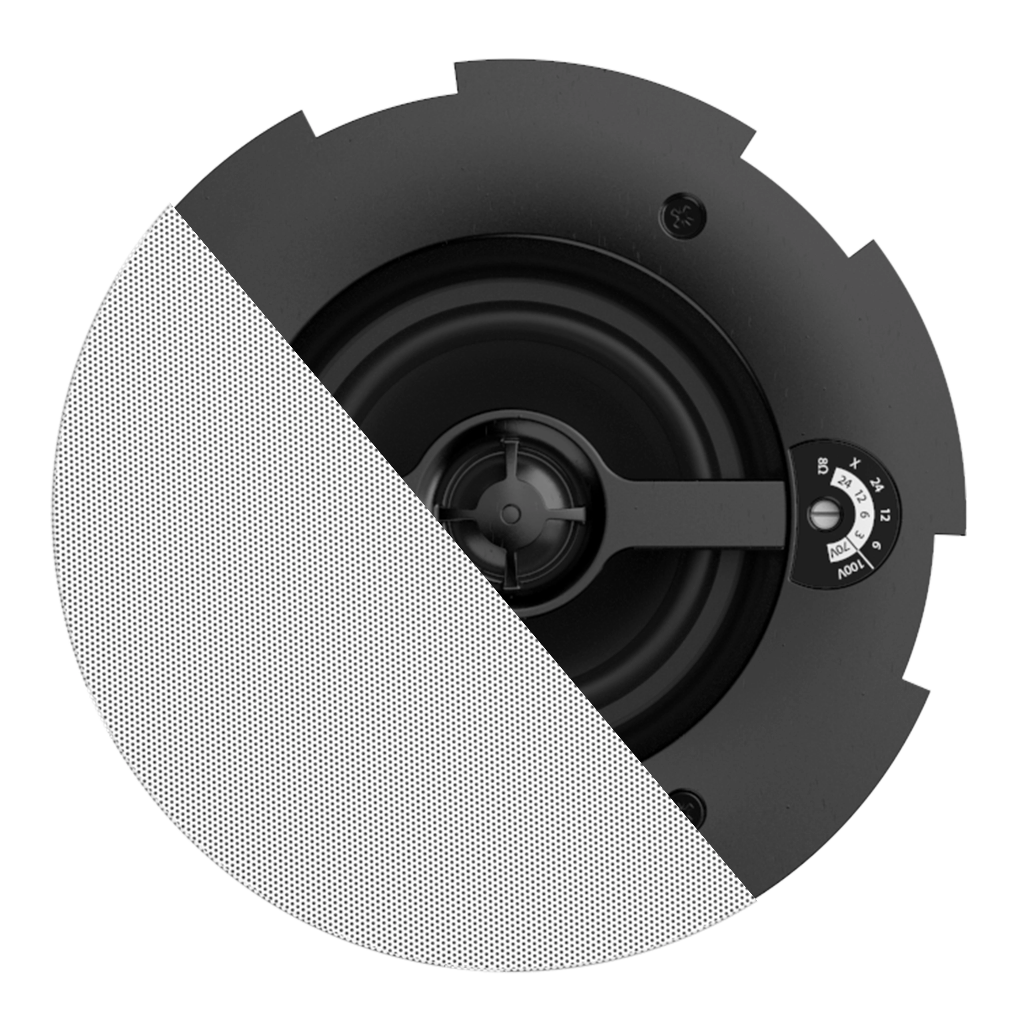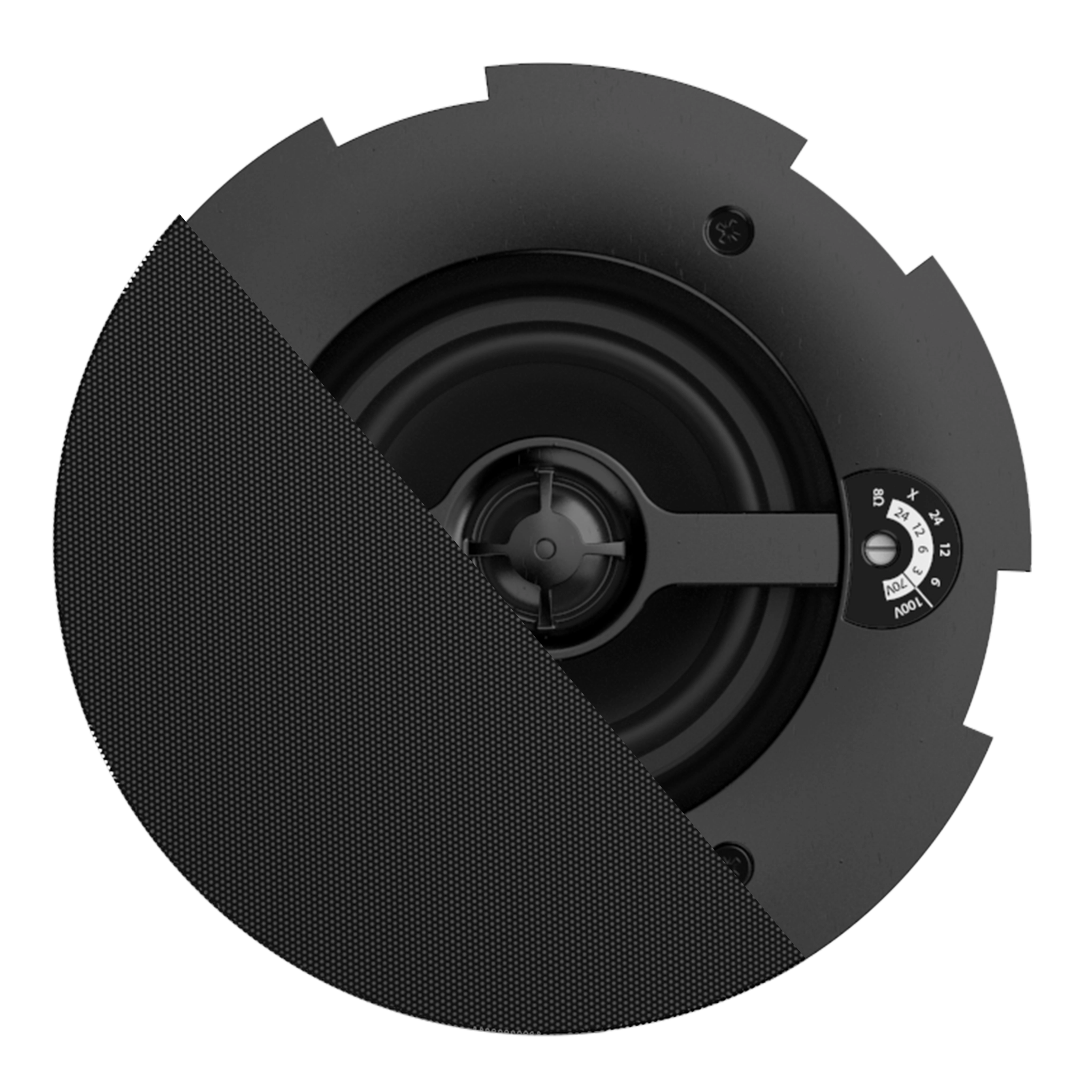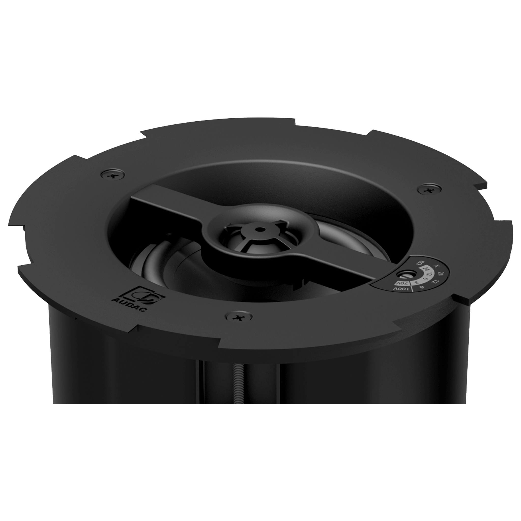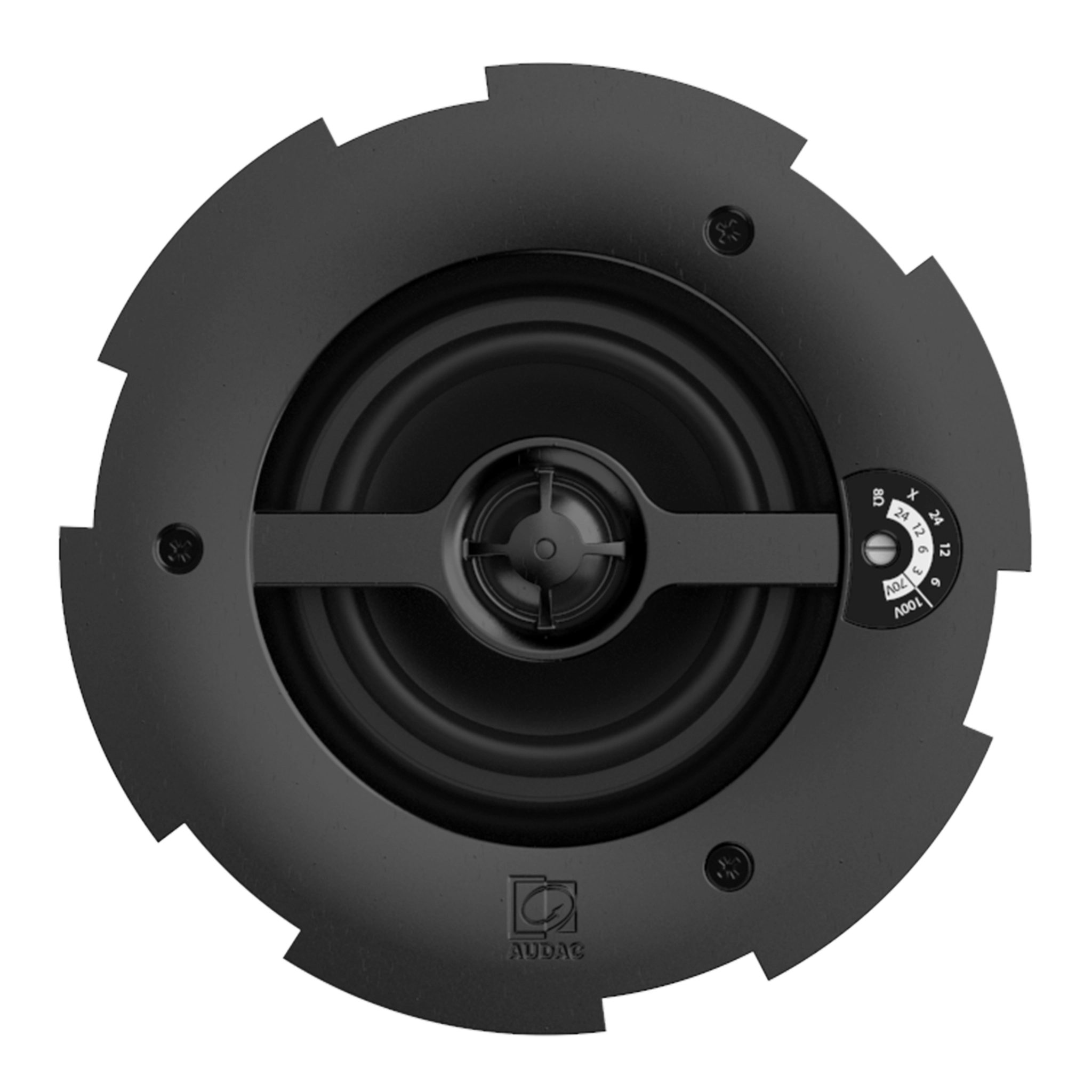 The 2-way construction combination with metal rear-dome guarantees premium performance for demanding applications. A continuous power handling of 30 Watt (RMS) and maximum power handling of 60 watt is achieved, while fitted with a rotary switch for tapping of the 70/100V line transformer with tappings for 24W, 12W, 6W and an 8 Ohm bypass connection.