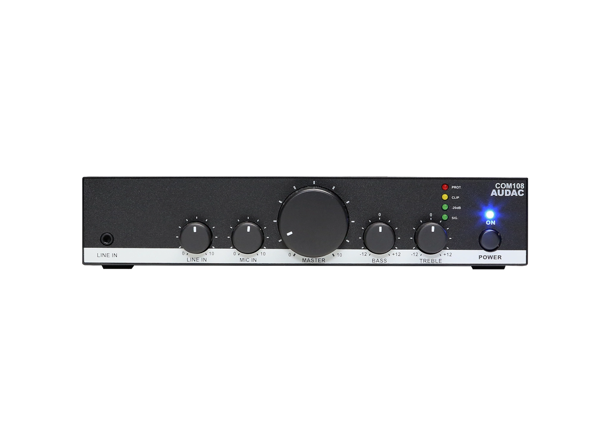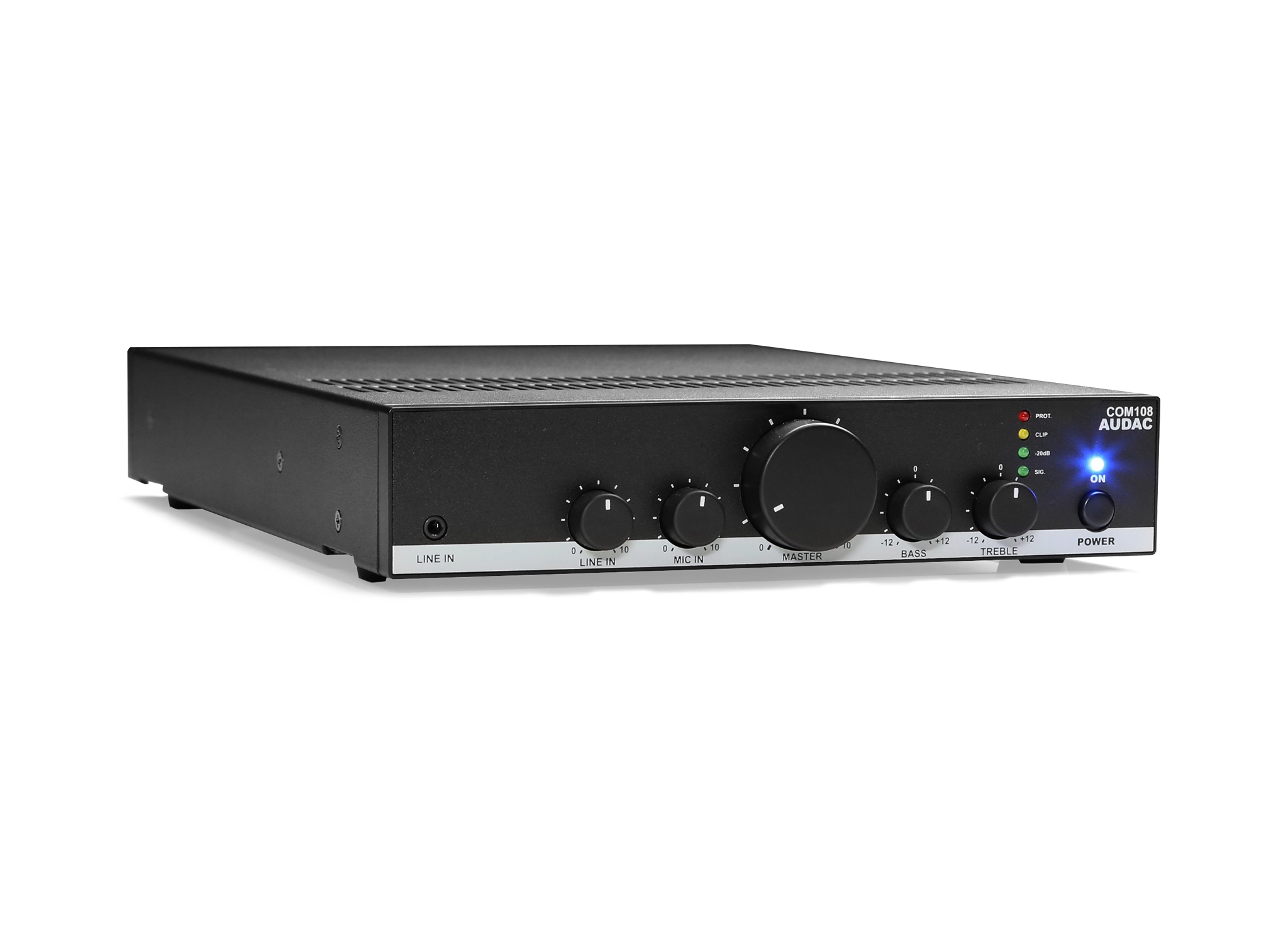 The COM108 is a compact but versatile public address mixing amplifier which offers solutions for small to medium size audio systems in commercial installations. Typical application are background music systems in retail stores, bars, restaurants and office buildings.