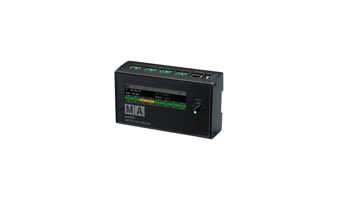 The grandMA3 onPC 8Port Node DIN-Rail 4K is a high-performance, space-efficient networking device designed for fixed installations requiring advanced DMX and RDM data distribution. Featuring 8 EtherCON ports and support for up to 4,096 parameters, this DIN-Rail mountable node integrates seamlessly with grandMA3 onPC systems. Ideal for architectural lighting, theme parks, and permanent setups, the 8Port Node DIN-Rail 4K offers reliable and scalable control in a compact form.