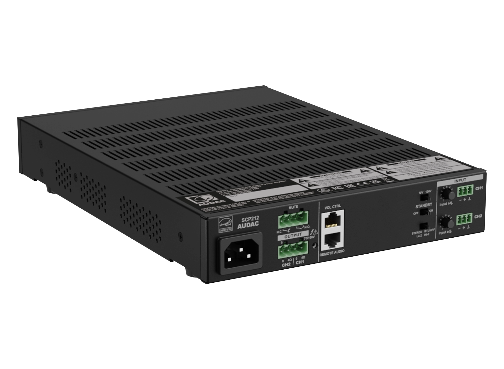 • Stereo low impedance or 70/100V bridge mode